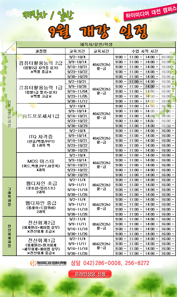 [정규개강]9월 실업자/재직자/일반 과정 일정 안내입니다.